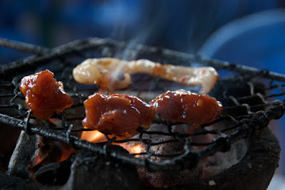 Grilled spicy meat, to be dipped in a lime+salt+pepper mixture. Â Nha Trang. This kind of treatment made even the squid slices into a treat.